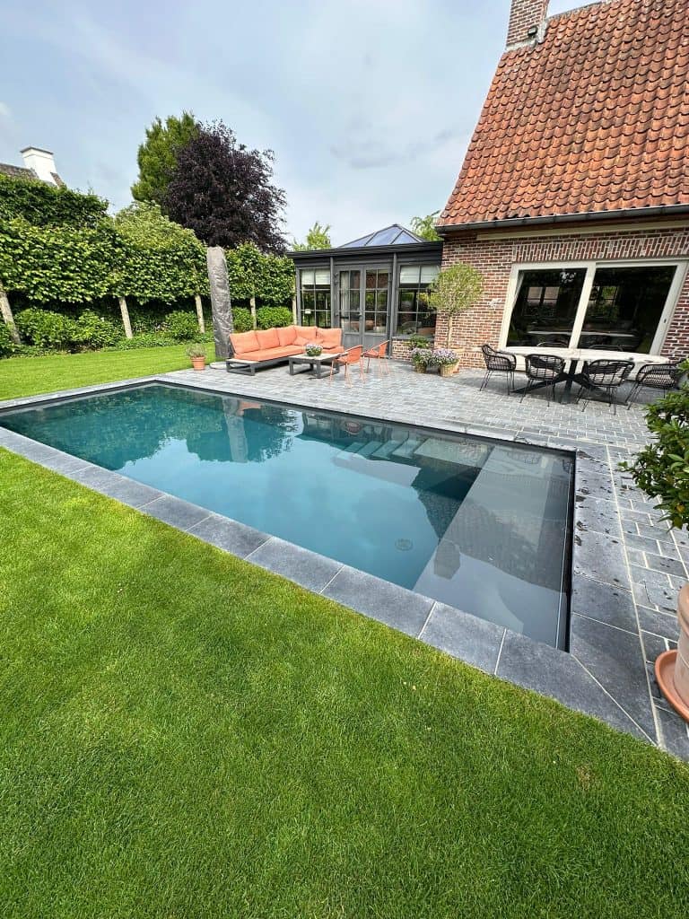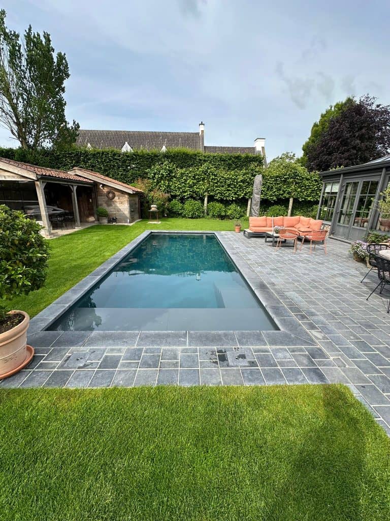 In Sint Martens Leerne plaatste we dit prachtige zwembad dat perfect aansluit bij de stijlvolle woning. Ook het zout electrolyse systeem en de frequentie gestuurde pomp namen we voor onze rekening.