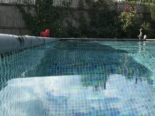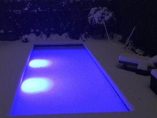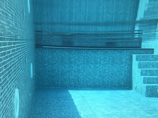Dit is ons eigen demozwembad dat bij ons te bezichtigen is. Dit zwembad is afgewerkt met mozaïek folie, een plage, rolluik met zonnelamellen en een jetstream.